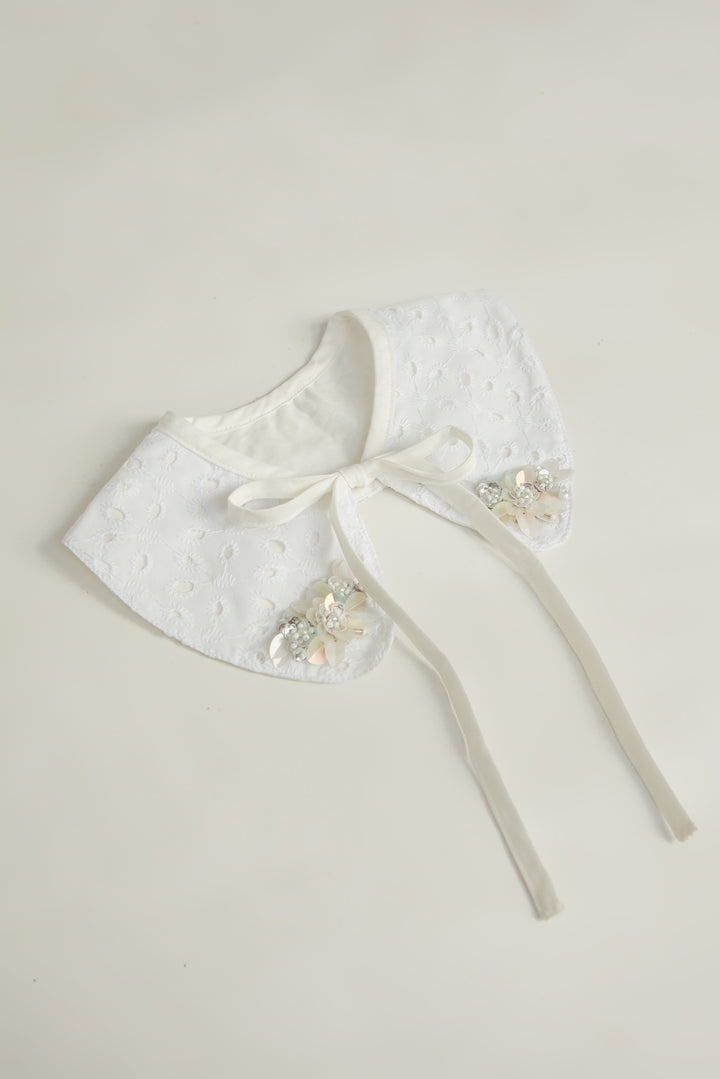 Accessories don't get collar than this. Crafted from eyelet cotton embroidery, these vintage-inspired removable collars are perfect for topping off any outfit. It also adorned with handcrafted 3D beadworks. Layer over your favorite t-shirt or pair it with a cosy sweater or sharp blouse.