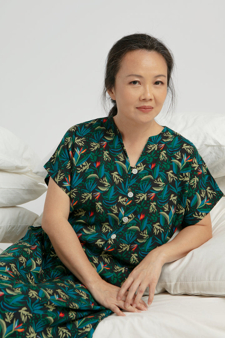 BUNI nightdress is our adjustable version of 'Daster' or Indonesian nightwear. Created with a maternity wear approach. Features two side ties that allow you to customize the fit that will accompany you in and off pregnancy.