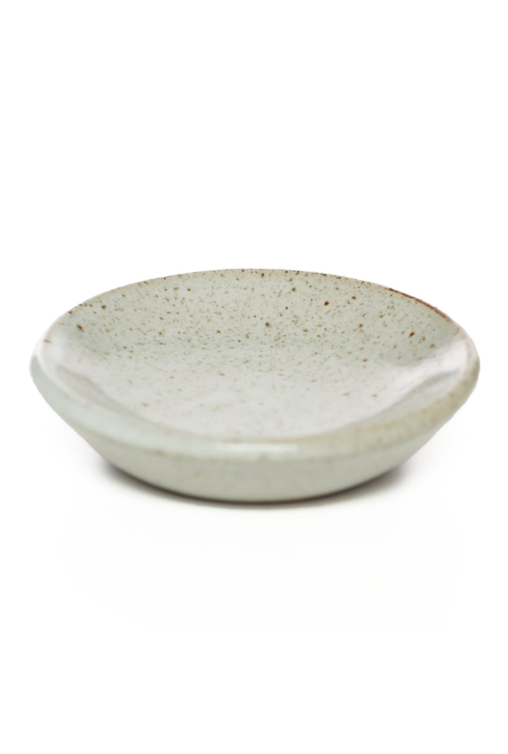 The hand-thrown oil burner has detachable oil dish that you can use separately as a general utility dish. The burner is to be used with a tea candle placed on the bottom portions and the burner is ready to light up your favorite essential oil. The handmade quality of the burner will bring extra warmth to your living space and makes an excellent addition to your relaxation routine. The set is made with local high fire stoneware, glazed in Zirconium White, fired to cone 6.
