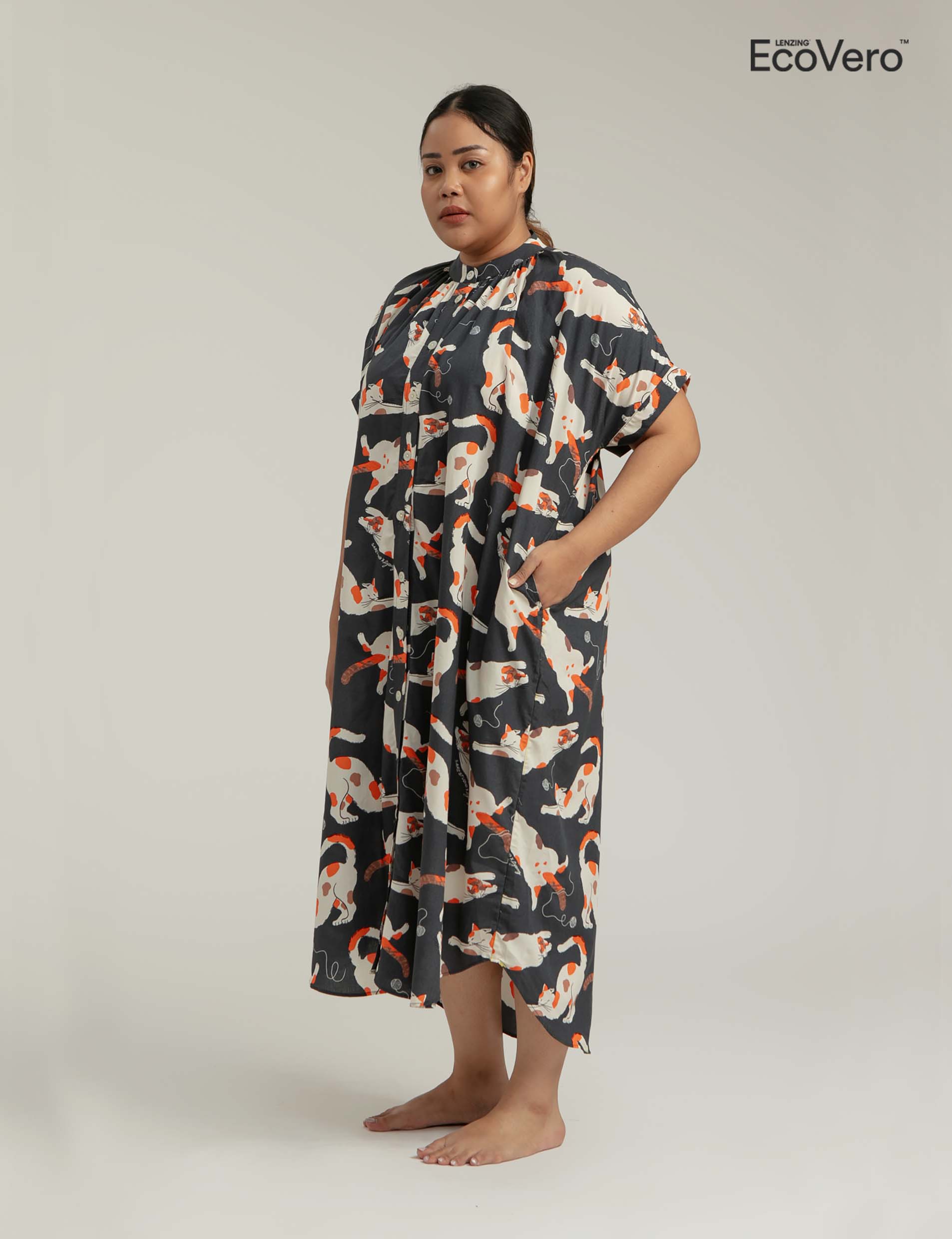 Obi is a resort-appropriate nightdress. Thanks to its roomy A-line silhouette with a round neckline. Perfect for your at-home activities as well as a day under the sun.