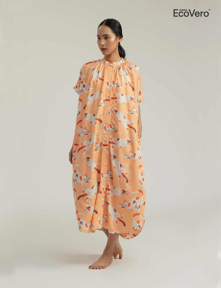 Obi is a resort-appropriate nightdress. Thanks to its roomy A-line silhouette with a round neckline. Perfect for your at-home activities as well as a day under the sun.