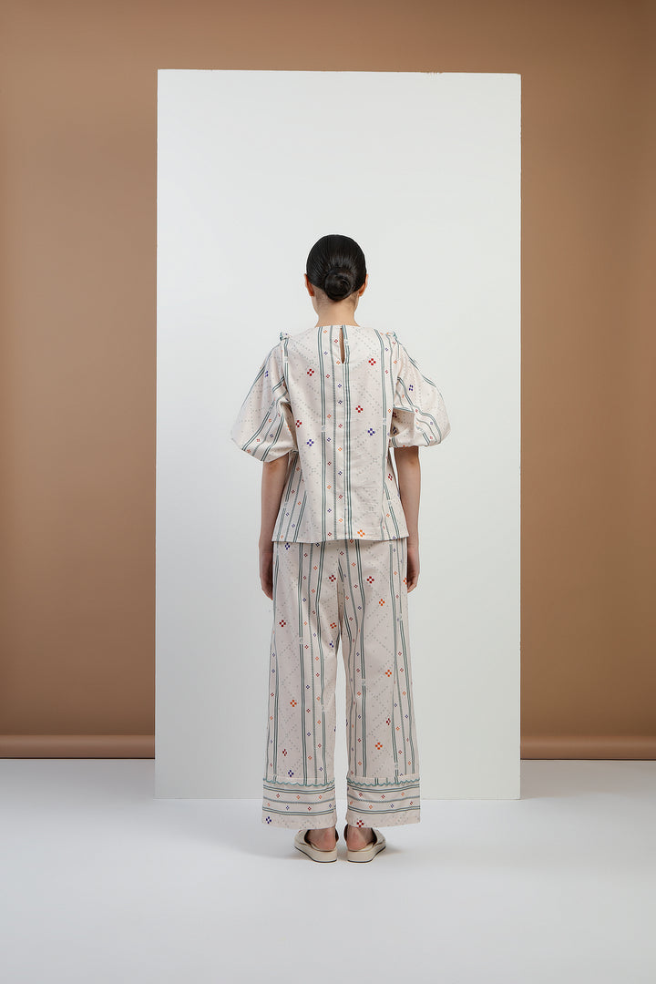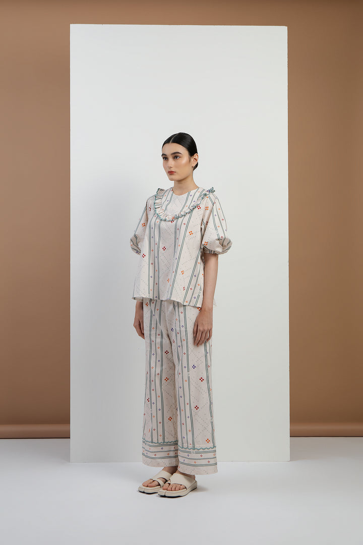 Pasia Ruffles Embroidered Top in Bone Bajamba