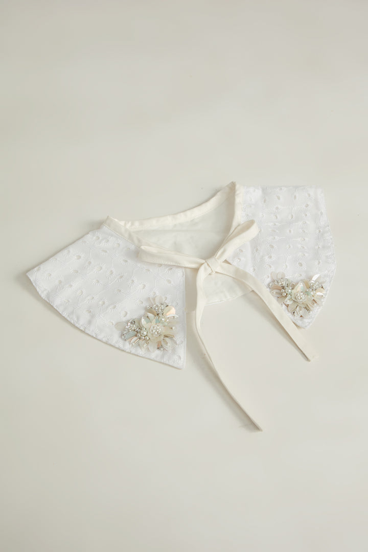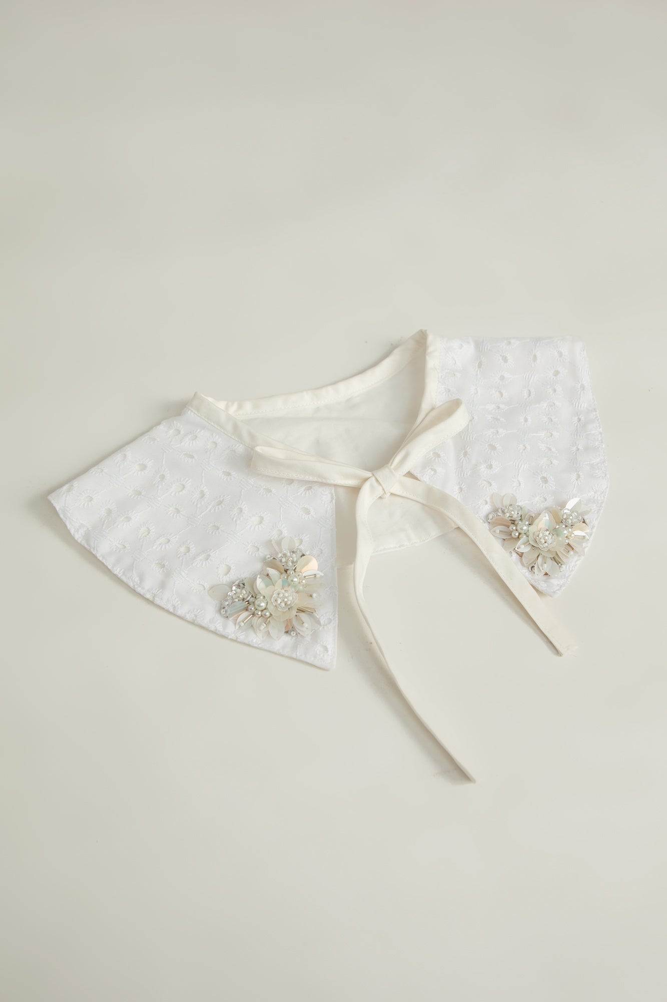 Accessories don't get collar than this. Crafted from eyelet cotton embroidery, these vintage-inspired removable collars are perfect for topping off any outfit. It also adorned with handcrafted 3D beadworks. Layer over your favorite t-shirt or pair it with a cosy sweater or sharp blouse.